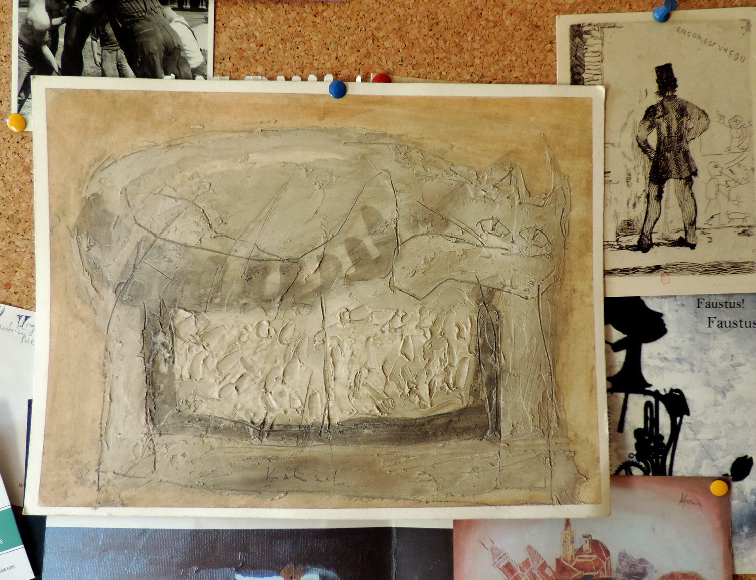| Painted plate by Lojze Kalinsek and one of my own works (mixed technique on canvas) |